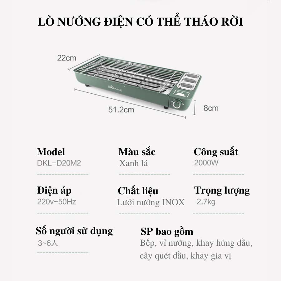 Bếp nướng BBQ điện Bear DKL-D20M2 có thiết kế thông minh có 2 khu vực nướng riêng biệt, giúp bạn thoải mái thưởng thức những hương vị nướng thơm ngon ngay tại nhà. Dưới đây sẽ cho bạn thông tin chi tiết nhất.