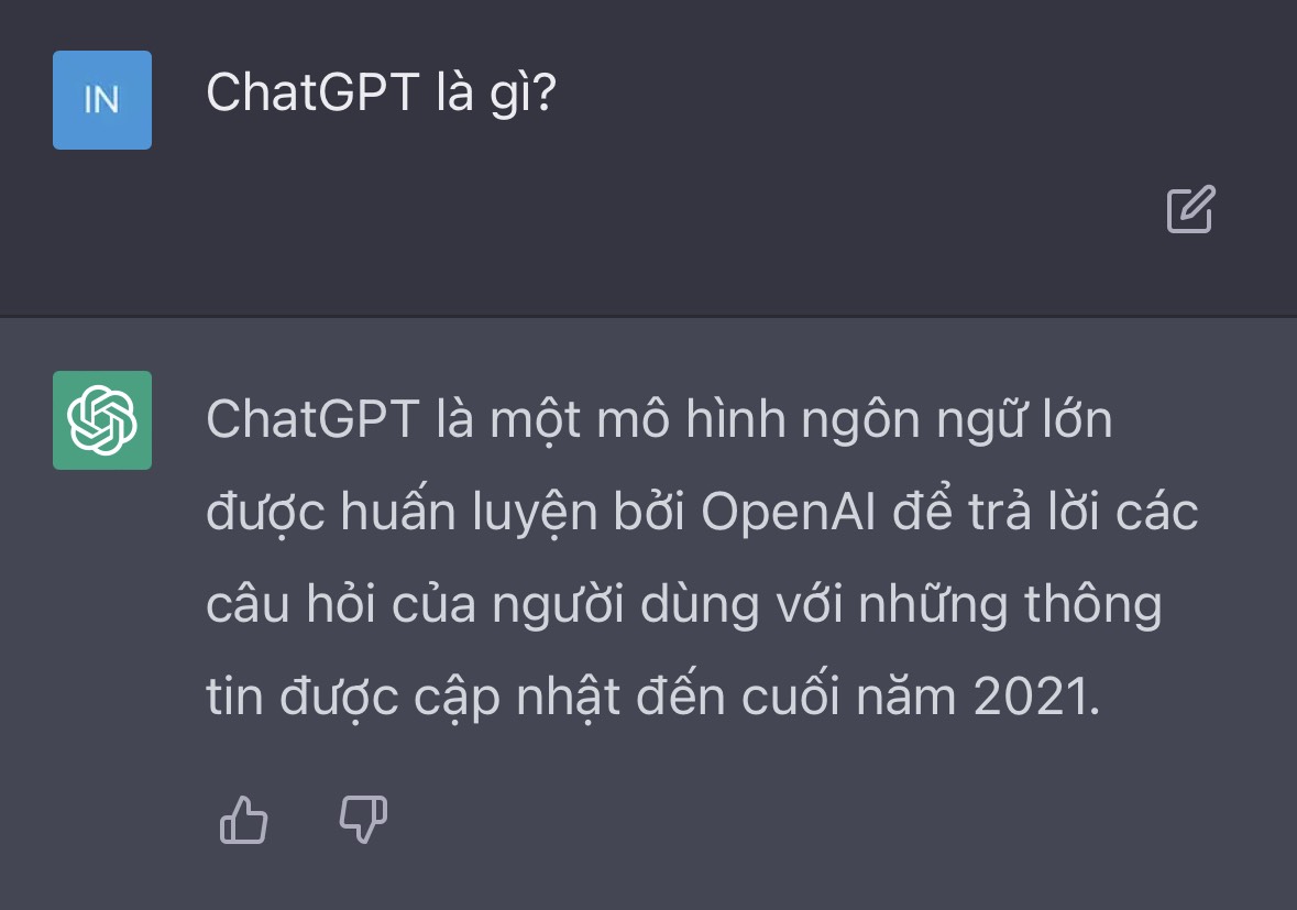ChatGPT là viết tắt của 'Chat Generative Pre-trained Transformer' - là một mô hình ngôn ngữ lớn được huấn luyện bởi OpenAI để trả lời các câu hỏi của người dùng với những thông tin được cập nhật đến cuối năm 2021.