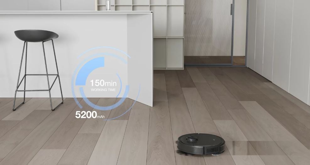 Deebot T9 AIVI được trang bị pin 5200mAh thời gian làm sạch có thể lên tới 150 phút.