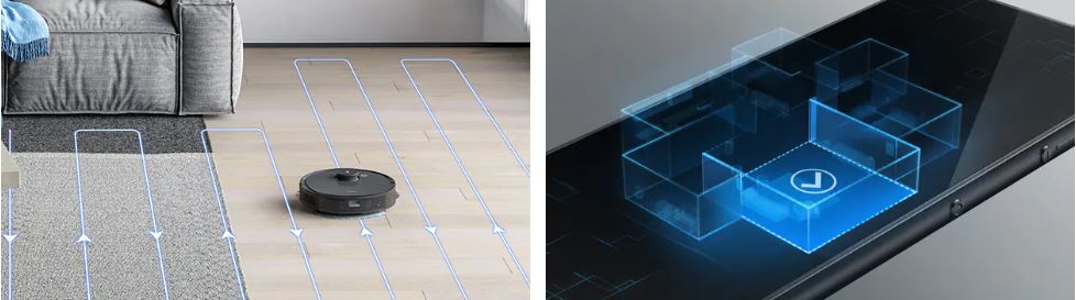 Điều hướng Truemapping mang tính cách mạng khi giúp Ecovacs Deebot T9 AIVI lập bản đồ chính xác hơn gấp 4 lần so với LDS. Ecovacs Deebot T9 AIVI được ứng dụng thuật toán DToF- công nghệ laser ứng dụng trong hàng không vũ trụ giúp robot xác định đươc vật thể xa hơn – nhỏ hơn. Kết hợp với công nghệ lập bản đồ 3D giúp bạn quan sát nhà được trực quan hơn.
