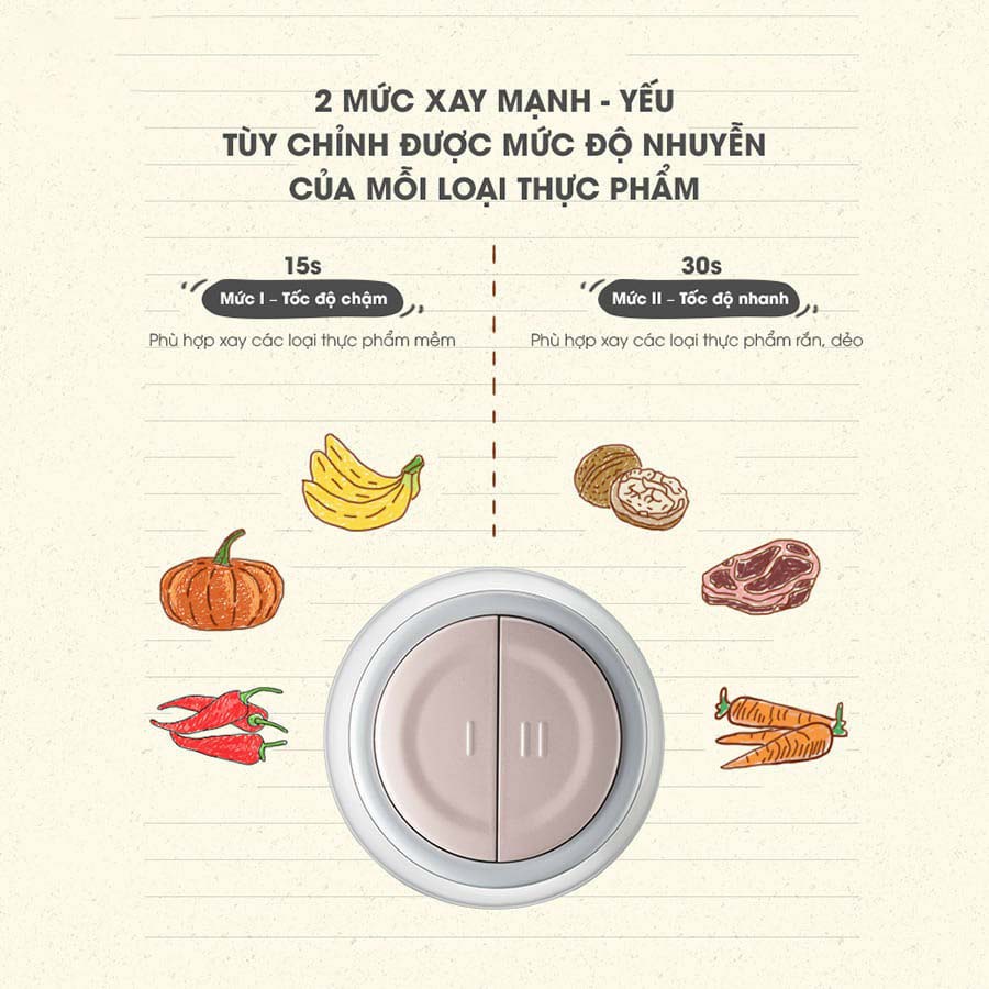 Máy Xay Thịt Bear QSJ-B02Q1 có 2 chế độ xay, với 2 tốc độ khác nhau, phù hợp cho xay thực phẩm mềm và cứng.