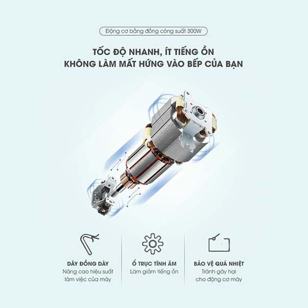 Máy Xay Thịt Bear QSJ-B02Q1 động cơ đồng 300W xay khỏe, ít ồn, nấu ăn thật nhẹ nhàng và thoải mái.