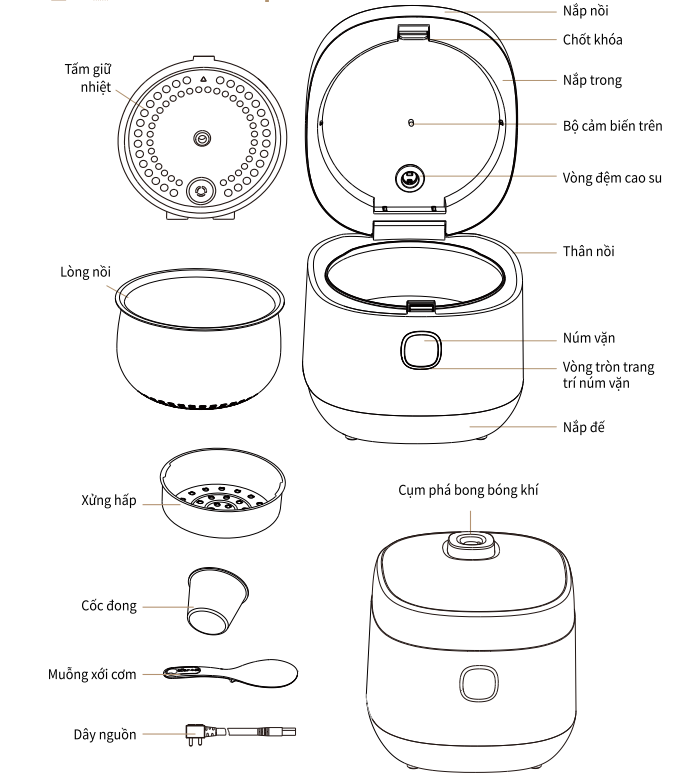 Nồi cơm điện tử cảm ứng BEAR DFB-C30D1 1.0L 600W Hàng Chính Hãng - Bảo Hành 1 Năm